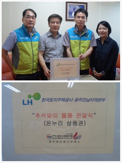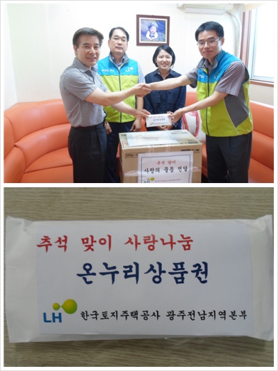 2014.09.01 ¸Å³â ÀØÁö ¾Ê°í ¹æ¹®ÇÏ½Ã¾î ¾ÆÀ̵鿡°Ô Á» ´õ dz¿ä·Î¿î ¸íÀýÀ» ¸ÂÀÌÇÒ ¼ö ÀÖµµ·Ï ³ª´®À» ½ÇÃµÇØÁÖ°í °è½Ã´Â LH Çѱ¹ÅäÁöÁÖÅðø»ç ±¤ÁÖÀü³²º»ºÎ Á÷¿ø ºÐµéÀ» ´ëÇ¥ÇÏ¿© ·ù¿ëÈÆ Â÷Àå´Ô°ú ½Å¿È£ °èÀå´Ô²²¼ Á÷Á¢ ¹æ¹®ÇÏ¿© Áּ̽À´Ï´Ù. ¹Ù»Û ÀÏÁ¤ÀÌÁö¸¸ ¾ÆÀ̵鿡°Ô ´õ ³ªÀº Ãß¼®¸íÀý·Î ±â¾ïµÇ±æ ¹Ù¶ó´Â ¸¶À½À¸·Î ÁغñÇØÁֽŠ¾Æµ¿¹°Ç°(Á¥º´¼¼Á¤Á¦.¼¶À¯À¯¿¬Á¦) ¹× ¿Â´©¸® »óǰ±Ç(100¸¸¿ø)À» Àü´ÞÇØ Áּ̽À´Ï´Ù.